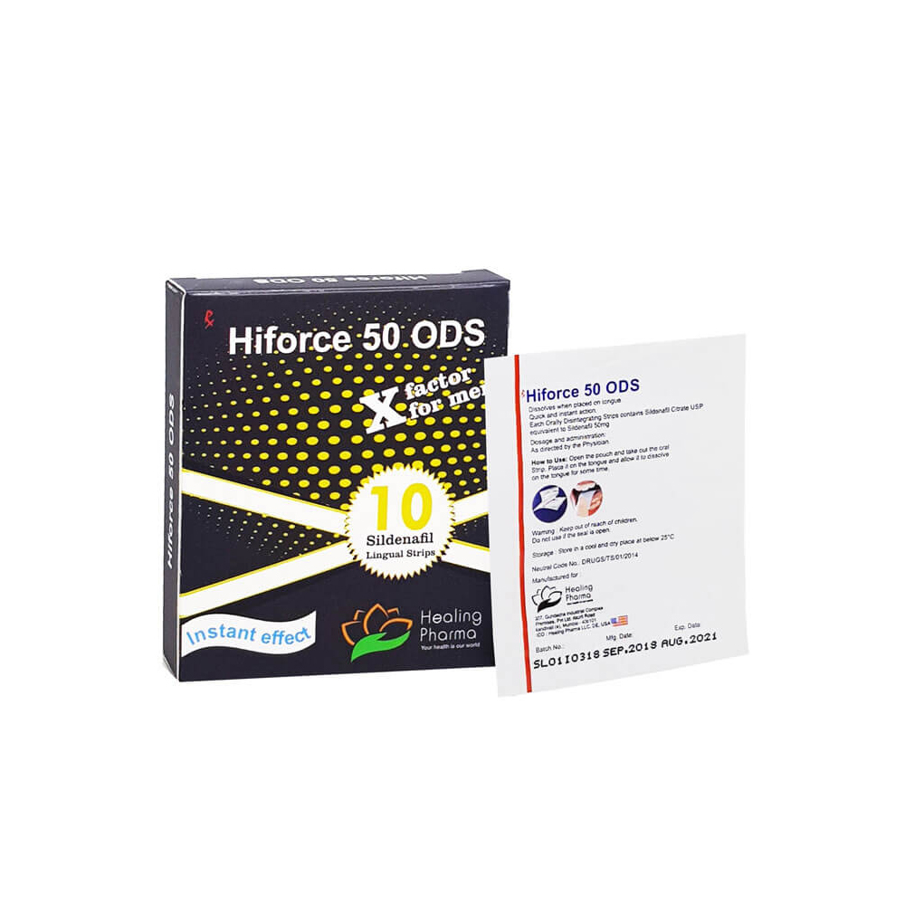 하이포스 50 ODS(Highforce 50 ODS)는 발기부전 치료 성분 실데나필(Sildenafil) 50mg을 함유한 필름형 경구용 제제입니다.